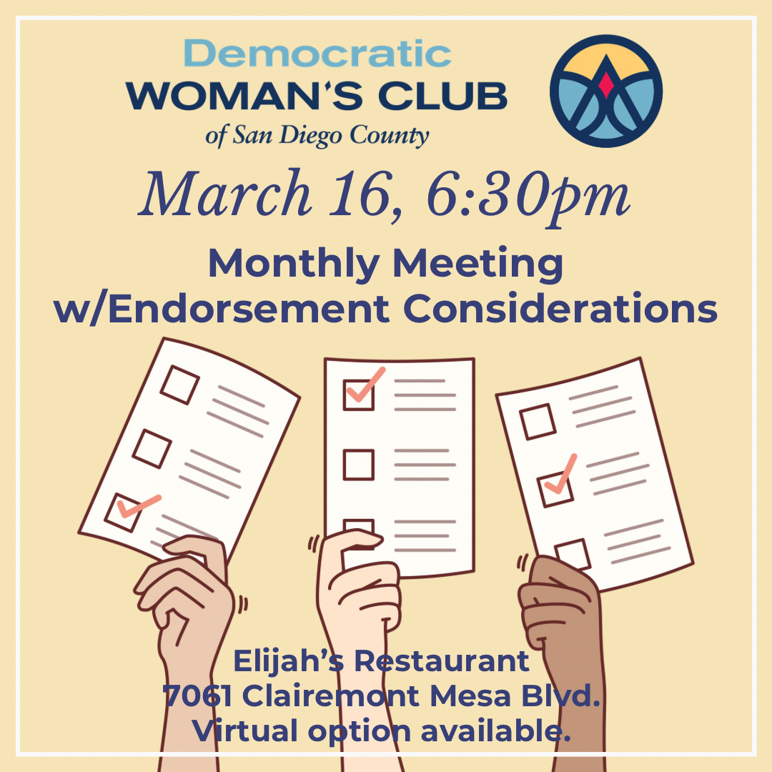 This meeting will be held at Elijah’s Restaurant, located at 7061 Clairemont Mesa Blvd. If you can’t make it in person, join virtually here: https://us02web.zoom.us/meeting/register/tZUpdOihqz0vGtOTpRtm29AUFVGLin2leJJ3
