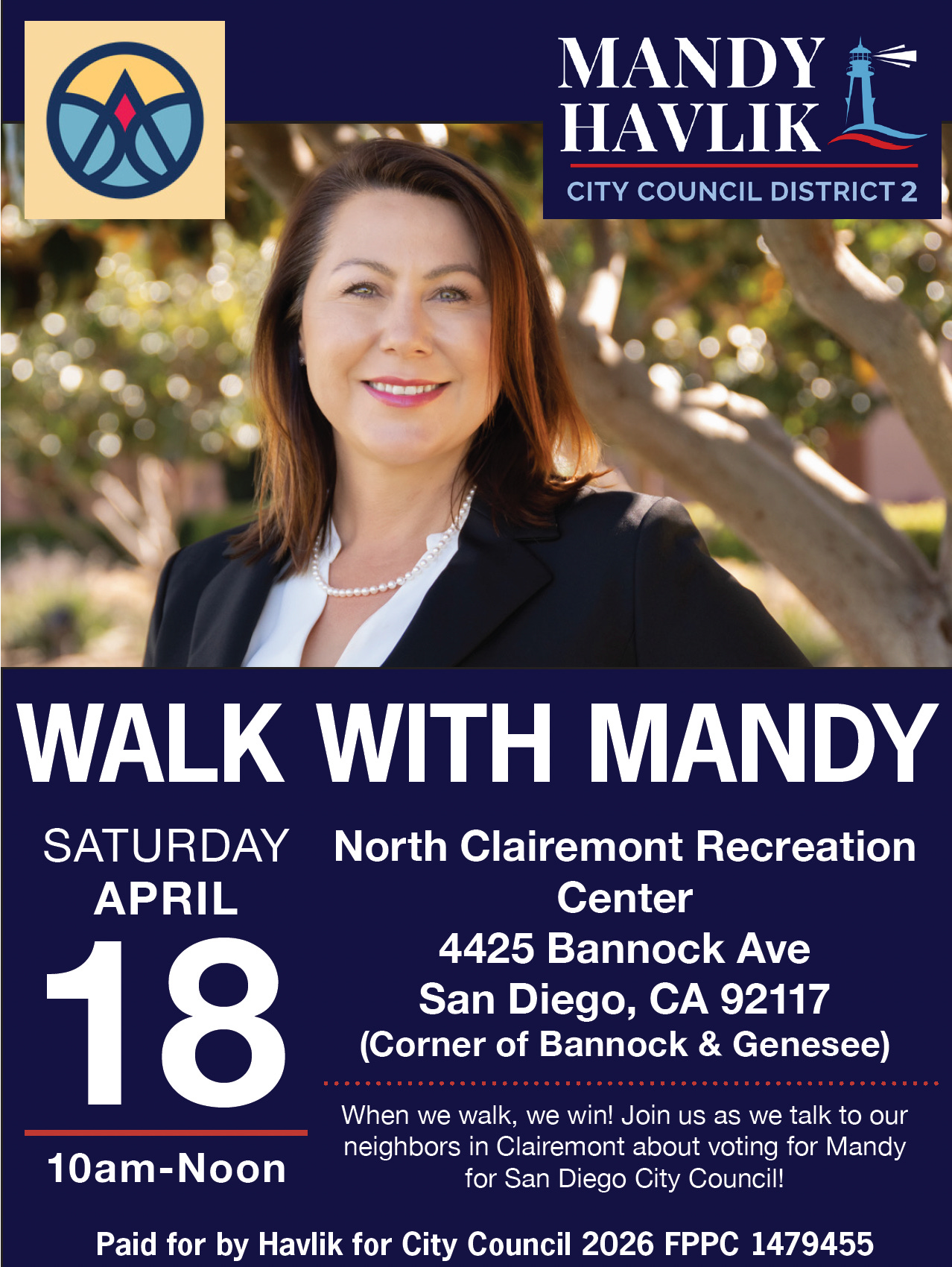 Come on out and join Team Mandy as we walk Clairemont and tell the public about her campaign!